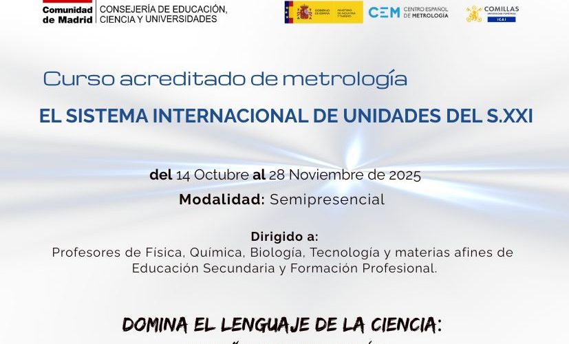“El Sistema Internacional de Unidades del S. XXI” Formación semipresencial con certificación en Competencia Digital Docente (A1 y A2) El Colegio Oficial de Físicos, en colaboración con el Centro Español de Metrología (CEM) y la Universidad Pontificia Comillas (ETSI-ICAI), lanza una nueva edición de este curso imprescindible para docentes de Secundaria, Bachillerato y FP. ✅… Leer más »